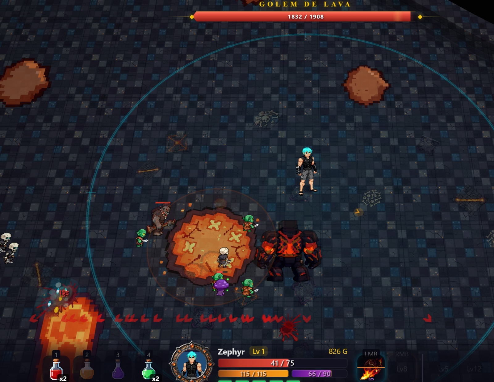 • 3 boss fights (Spider Queen, Lord of Bones, Lava Golem)